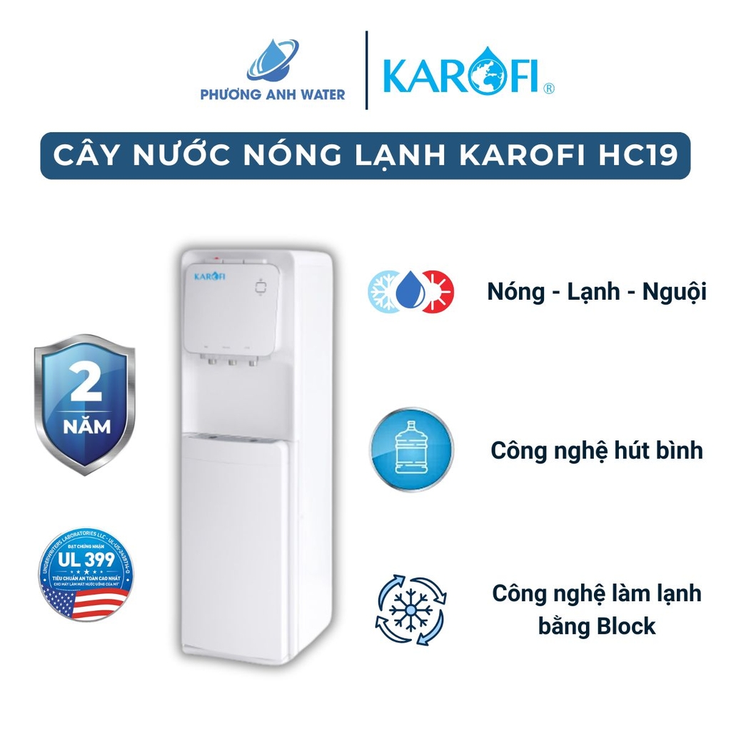 - Cây nước nóng lạnh Karofi HC19 được sản xuất theo quy trình công nghệ được cấp giấy chứng nhận ISO 9001:2015 và sản phẩm được chứng nhận hợp quy, cấp bởi Trung tâm kỹ thuật tiêu chuẩn đo lường chất lượng 1 (QUATEST 1), đảm bảo đủ tiêu chuẩn lưu thông sản phẩm trên thị trường.