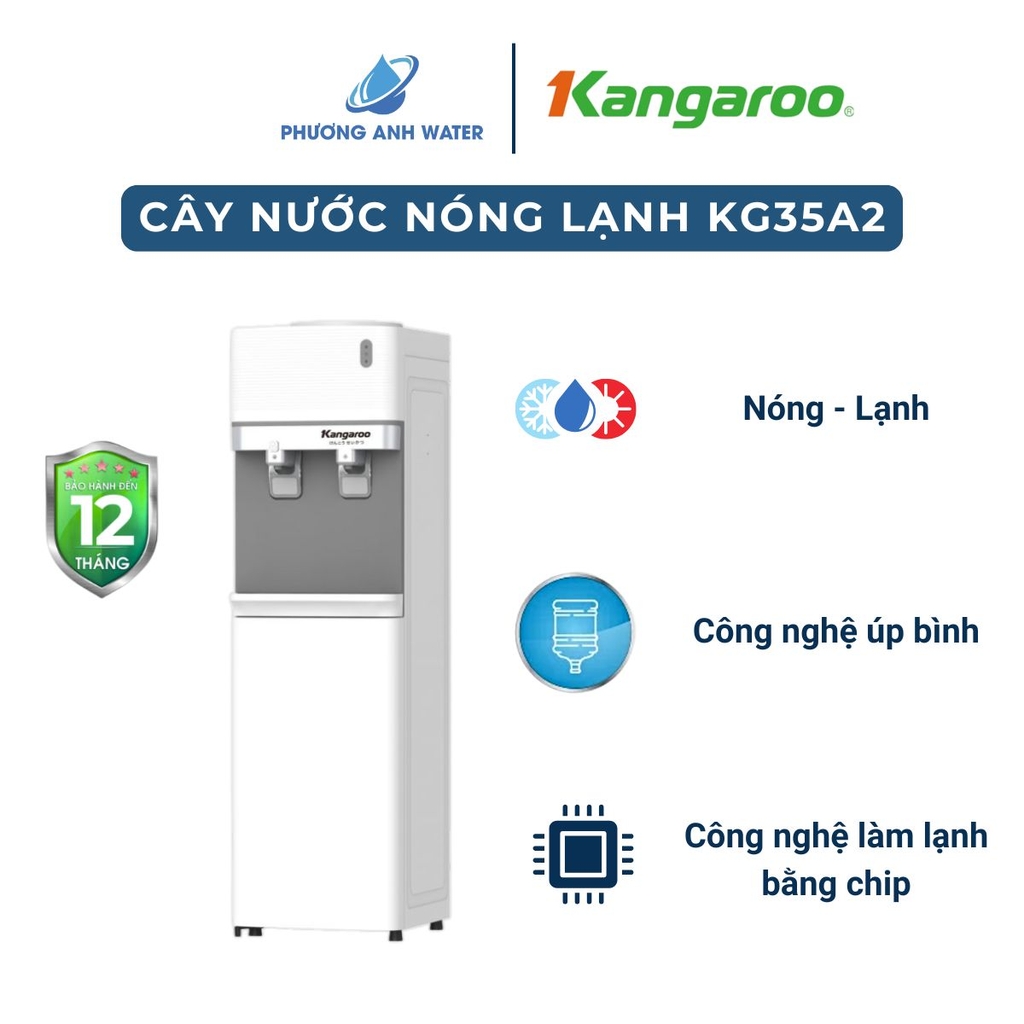 - Cây nước nóng lạnh Kangaroo KG35A2 còn trang bị thêm khoá vòi nóng an toàn cho gia đình có người già và trẻ nhỏ. Bên cạnh đó, đèn báo hiển thị chế độ nước được trang bị trên mặt kính máy giúp người dùng phân biệt được loại nước đang được sử dụng đồng thời tính năng tự ngắt khi quá tải đảm bảo an toàn hơn cho người dùng.