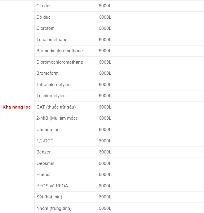 12 tháng (với lưu lượng nước sử dụng 15L/ngày tương đương 6000L) |