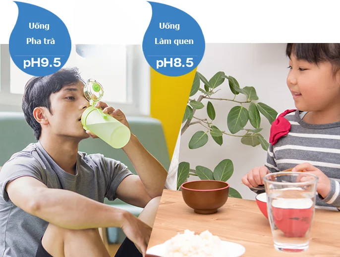 2 loại pH kiềm: 8.5 - 9.5 dùng để uống hằng ngày tốt cho sức khỏe, cân bằng pH cơ thể.