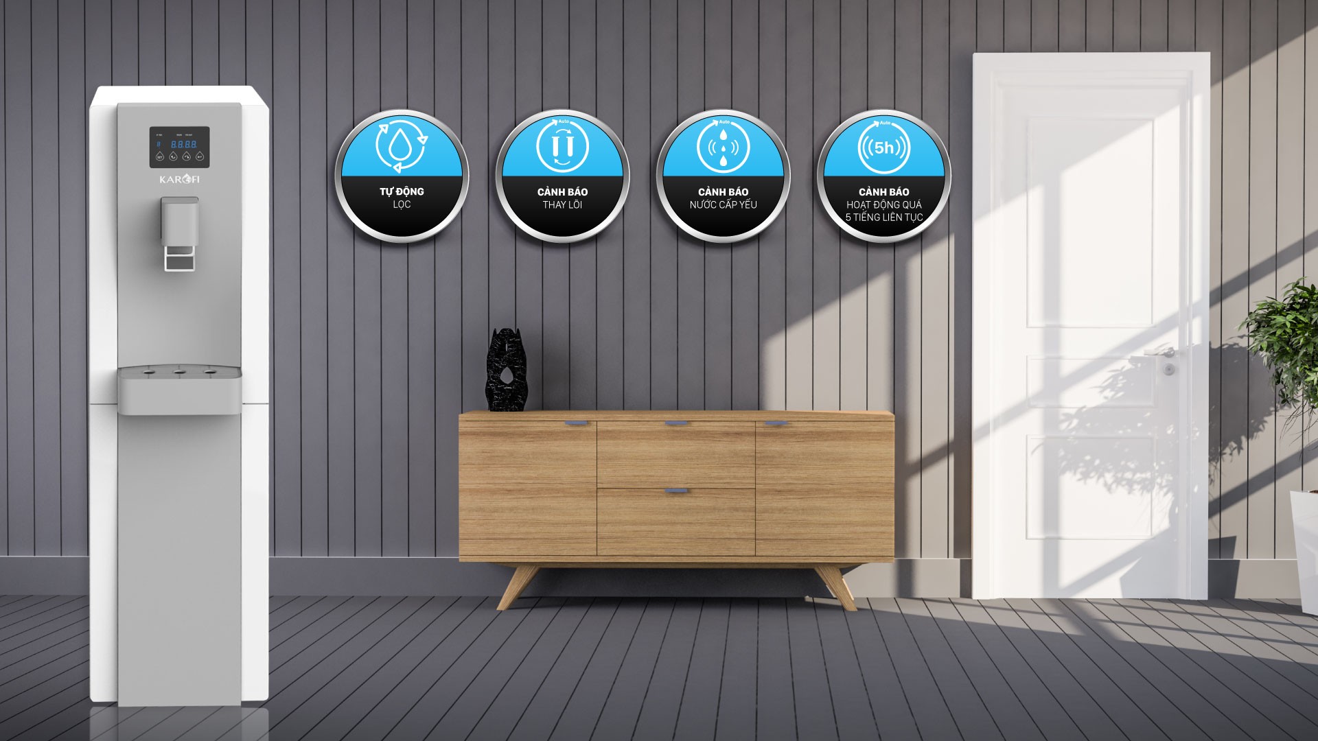 - Được trang bị màng lọc RO thay nhanh Hàn Quốc, vô trùng tuyệt đối, loại bỏ 99.99% vi khuẩn, virus, tạp chất, các ion kim loại nặng nhưng vẫn cung cấp đầy đủ lượng khoáng chất, nâng cao độ pH cần thiết cho cơ thể nhờ vào các lõi chức năng được tích hợp.