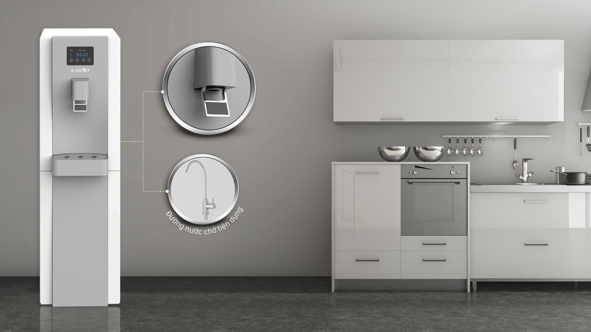 Máy lọc nước Karofi K-i238 với thiết tế góc cạnh, đường nét hài hòa tinh tế mang lại sự sang trọng, hiện đại cho không gian ngôi nhà bạn.