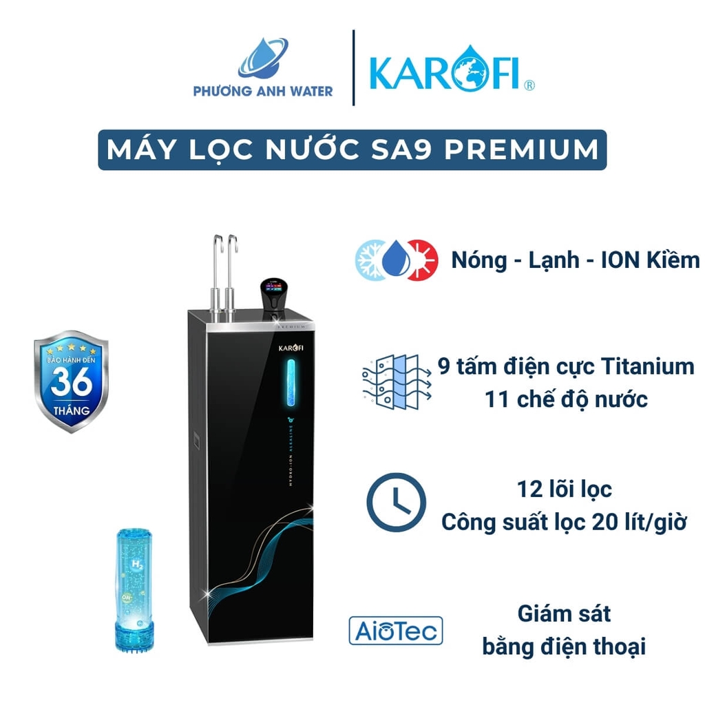 - Máy lọc nước Karofi SA9 PREMIUM với các chế độ nước Nóng - Lạnh - Nguội - Hydro ION Kiềm, không chỉ mang đến chất lượng nước sạch mà còn giúp bạn cũng như cả gia đình khỏe hơn, trong đó: