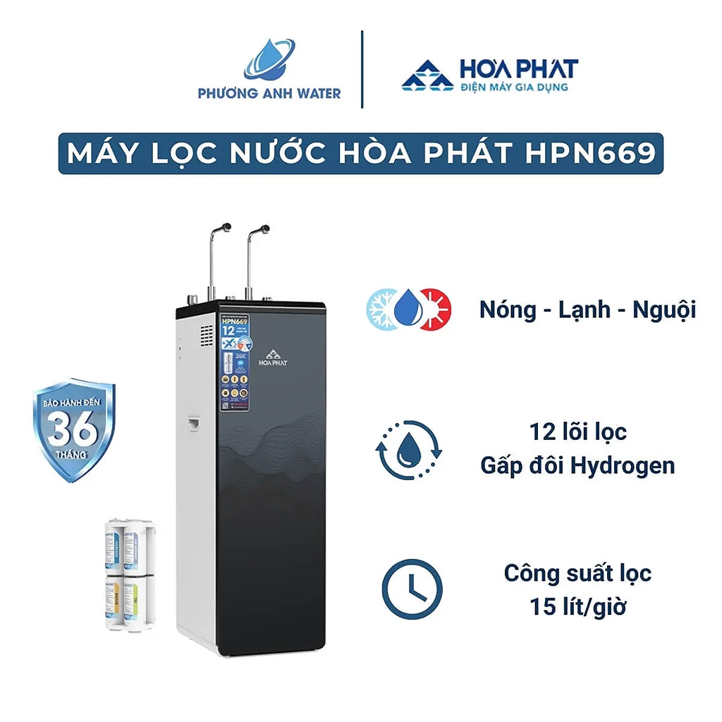 - Đồng thời, HPN669 có 12 lõi lọc mạnh mẽ cùng lõi lọc chính là màng RO 75GPD Dupont Filmtec từ Mỹ đạt tiêu chuẩn NSF/ANSI 58, đem lại sự tinh khiết cho nguồn nước và bảo vệ sức khỏe cũng như đáp ứng đủ nhu cầu về nước cho gia đình bạn.