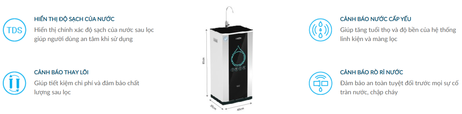 Máy lọc nước Karofi IRO 2.0 tích hợp bộ vi xử lý tích hợp các tính năng thông minh giúp giảm được chi phí đáng kể trong quá trình sử dụng máy.
