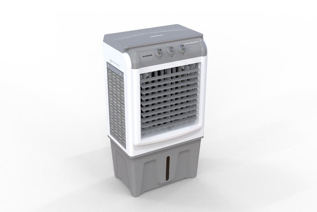 - Quạt điều hòa không khí Sunhouse SHD7744 có thiết kế dạng truyền thống, điều khiển bằng núm vặn cơ với màu ghi sữa trang nhã, động cơ làm bằng đồng nguyên chất siêu bền. Thân máy làm bằng nhựa PP bền bỉ, hạn chế bám bụi, dễ dàng vệ sinh.