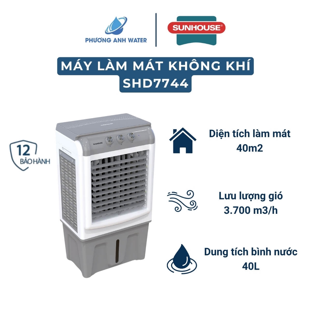 - Mặc dù được sử dụng ở không gian mở và lớn như sân vườn, phòng khách, ban công... nhưng sản phẩm lại không hề tốn quá nhiều chi phí điện năng. Với công suất làm mát ở mức 125W, sản phẩm đem đến hiệu quả tiết kiệm gấp 10 lần so với điều hòa. Hoạt động êm ái, hạn chế tiếng ồn cũng là một trong những ưu điểm của SHD7744.