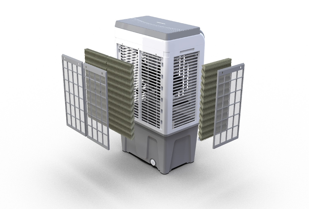 - Luồng không khí cũng được lọc sạch qua 2 lớp: Lưới lọc bụi bên ngoài và tấm làm mát phía trong. Cơ chế là lưới lọc bụi sẽ giữ lại các bụi lớn và tấm làm mát khi đang ướt nước sẽ giữ lại các hạt bụi cỡ nhỏ hơn (vì thế nên bạn phải thường xuyên vệ sinh 2 bộ phận này để kéo dài tuổi thọ của chúng).