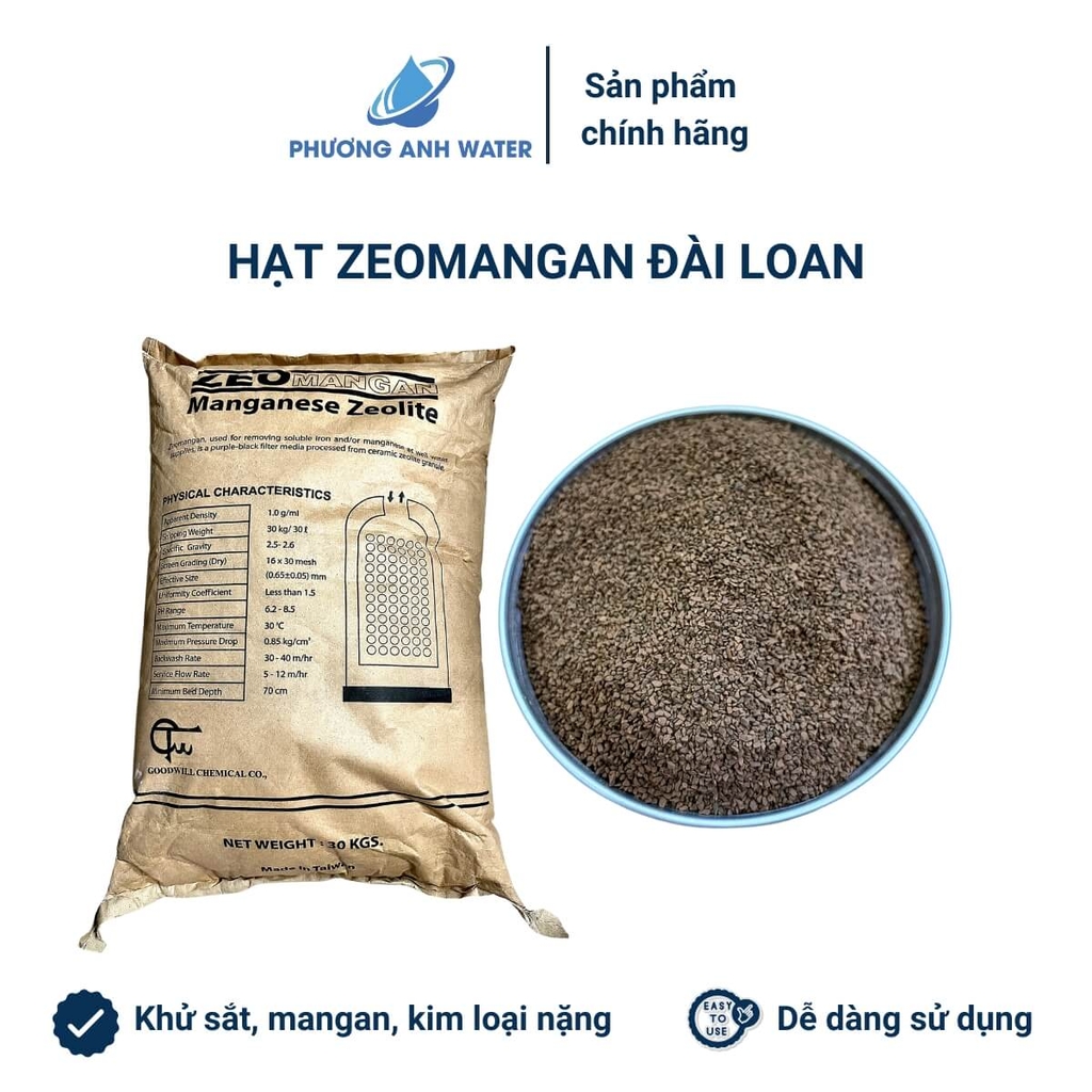 - Hạt Zeomangan Đài Loan dùng để xử lý nước giếng khoan nhiễm phèn, nhiễm mặn... và khử mùi tanh, mùi nước nhiễm sắt, mangan, asen.